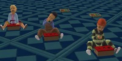 Why wouldn't she be when she had not one but two other toddlers to play with!